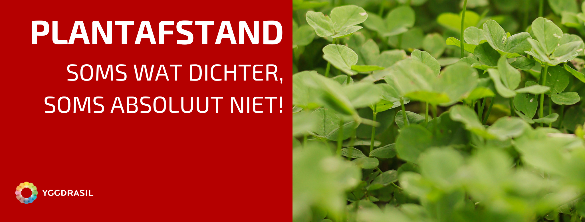 Verklein hoogstens de afstand tussen de rijen, simpelweg zodat de boel net iets sneller dichtgroeit en het zichtbare contrast met de bruine aarde verdwijnt. Doe je dat niet en prop je planten te dicht op elkaar, dan krijg je exact dezelfde problemen als bij de klaver: planten kunnen niet goed uitgroeien, concurreren voor licht, schieten te snel in de bloei, rotten sneller en krijgen last van ziektes. Het is belangrijk om dit met mate en beperkt toe te passen.